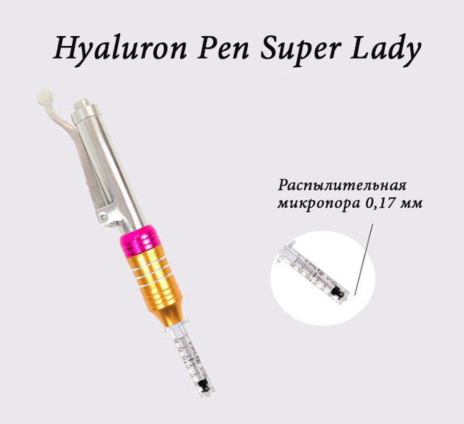 Багаторазовий безгольний ін’єктор гіалурон пен (Hyaluronic Pen) розроблений фахівцями Південної Кореї. За допомогою інноваційного пристрою вводять підшкірно рідкі і гелевидні препарати. Через відсутність ін’єкційної голки процедура абсолютно безболісна для пацієнта.