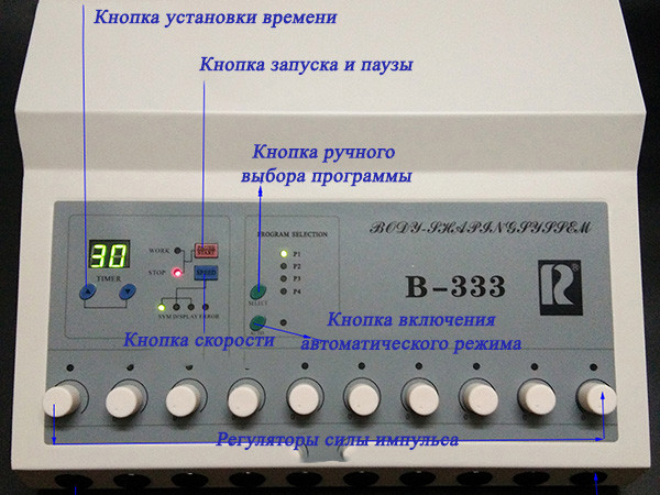 - Тонізації в’ялих м’язів. Міостимулятор В-333 сприяє ефективному опрацюванню м’язів, не вимагаючи фізичних зусиль.