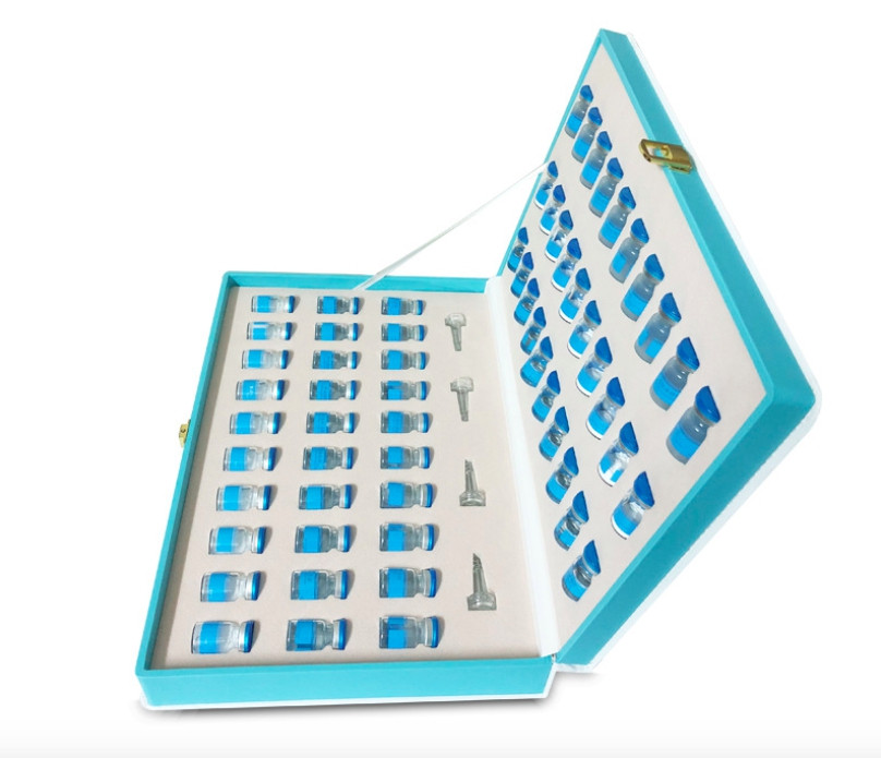 В міні набір входить 6 пляшок по 5 мл. Для різних процедур і 1 багаторазова піпетка.